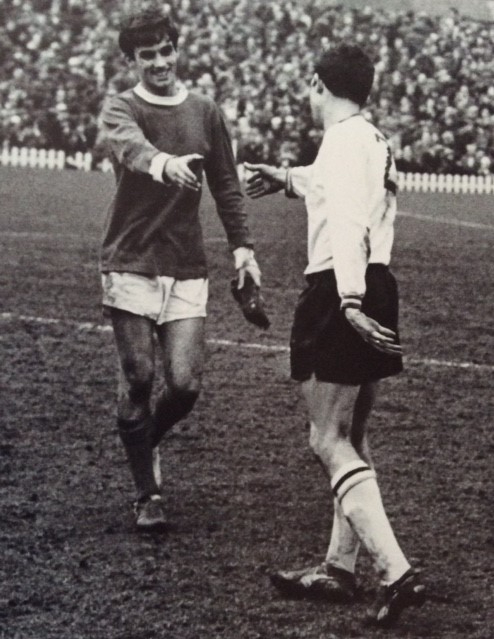 My memories of that game are blurred but I do remember the bright orange colour of the ball, in vogue in those days and that this young boy, George Best scored one of the goals as United exacted 5 -1 revenge on their Lancashire neighbours, Burnely. Best had made his debut earlier in September that year, but his fatherly mentor and manager, Matt Busby decided that George needed a little more toughening in the reserves before he would be let leash on the English first division. Best was never again left out of a United side during Busby’s reign, after that second Burnley match.