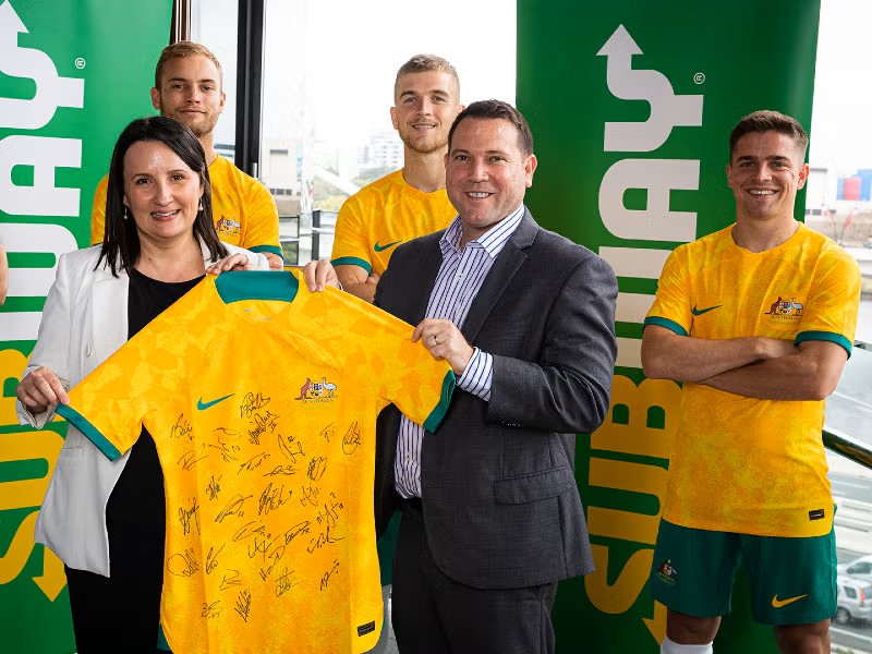 Full time blows for Football Australia Chief Executive James Johnsonand Subway Australia (pic. J Field )