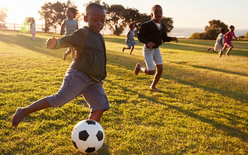 African children enjoying football in the fields, far from the madding crowd